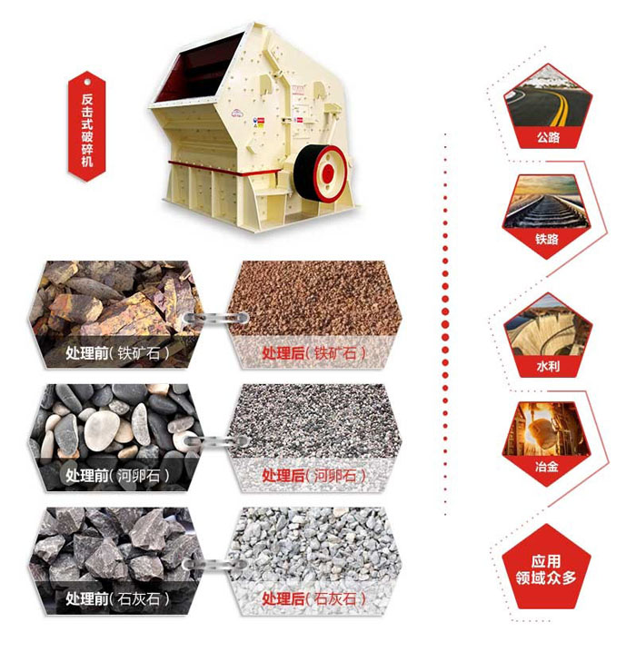 PF反击破是石料生产线中较常见的 破碎设备,该设备主要是对物料进行中细碎加工处理,该设备的结构设计较成熟合理,是一种重型转子设计,可将高耐磨材料进行正好结合,其处理量大,进出料口个根据用户的实际生产需求进行合理调整,其调整范围广,可满足用户不同生产需求,使用灵活性较强,在运行作业中较稳定可靠,故障率较低,较好减少设备维修维修停机时间,运转效率得到较好提升,使用寿命较长,而还耗能低,粉尘小和噪音污染出现,能够完全符合国家环保标准要求。